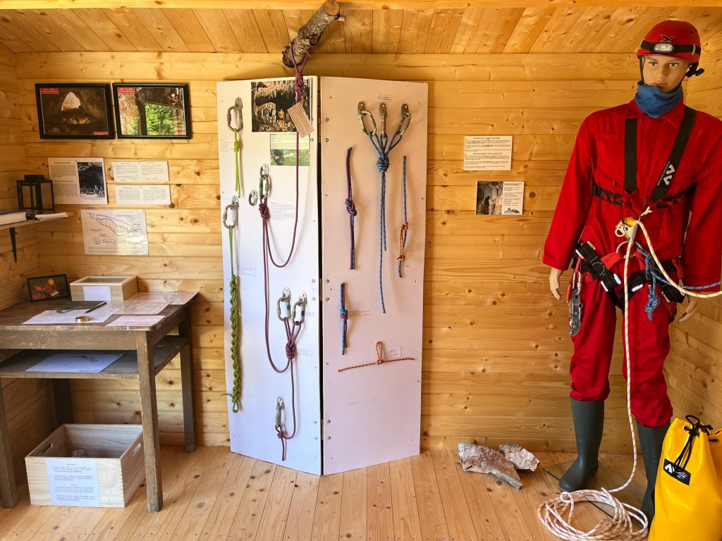 Interpretacijski centar donosi zanimljiv koncept s tematskim drvenim kućicama. Prva je posvećena speleologiji, gdje se može vidjeti kako su se nekad istraživale špilje i kako to izgleda danas – od stare opreme do moderne tehnologije.